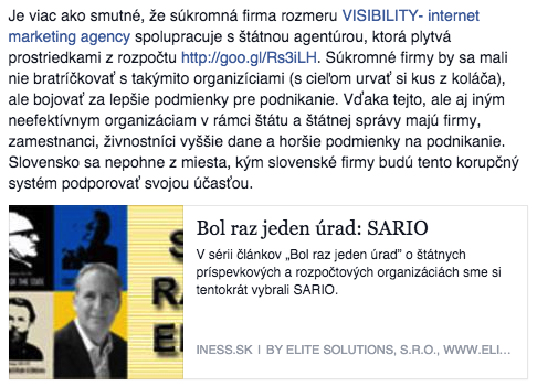 So slovenskou agentúrou pre rozvoj investícií a obchodu (SARIO) spolupracujeme už pár rokov. Ja osobne som viedol 2 alebo 3 workshopy ohľadom využitia online marketingu pre proexportne orientované firmy a teraz budeme mať znovu podobnú tému. Nikdy sme od SARIO nedostali ani cent. Vopred nám oznámili, že na podobné aktivity nemajú alokované finančné prostriedky a či chceme spolupracovať aj napriek tomu. A nakoľko vzdelávanie trhu je jedna z našich priorít (a samozrejme aj cesta k potenciálnym klientom), dohodli sme sa.