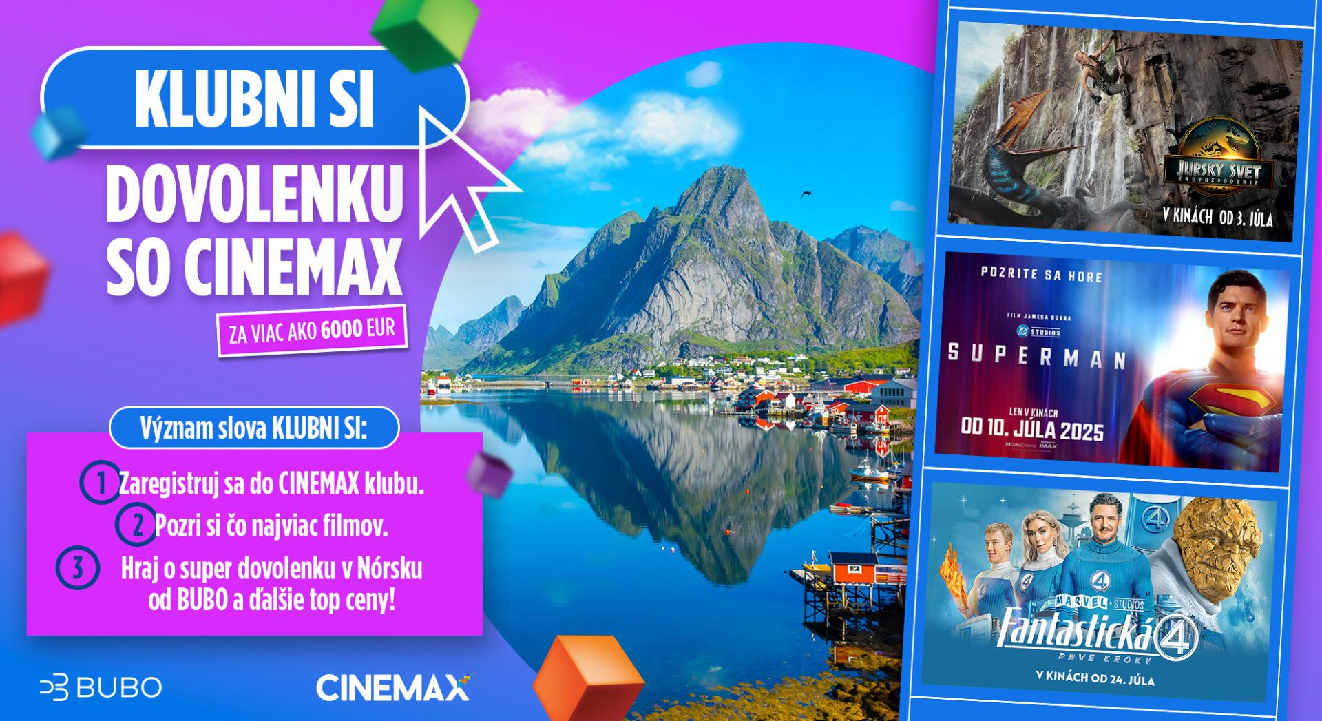 Letná sezóna býva pre kiná tradične najdôležitejším obdobím. V programe dominujú kasové trháky a publikum má chuť na zábavu aj oddych. CINEMAX túto sezónu využil naplno. Od júla rozbehol silnú multikanálovú kampaň, ktorá spojila návštevu kina s možnosťou získať zážitky aj mimo sály. Hlavnou výhrou bola dovolenka v Nórsku od BUBO v hodnote viac ako 6 000 eur, ďalšími lákadlami boli pobyt v Turecku, kino na rok zdarma, wellness víkendy či desiatky ďalších cien.
