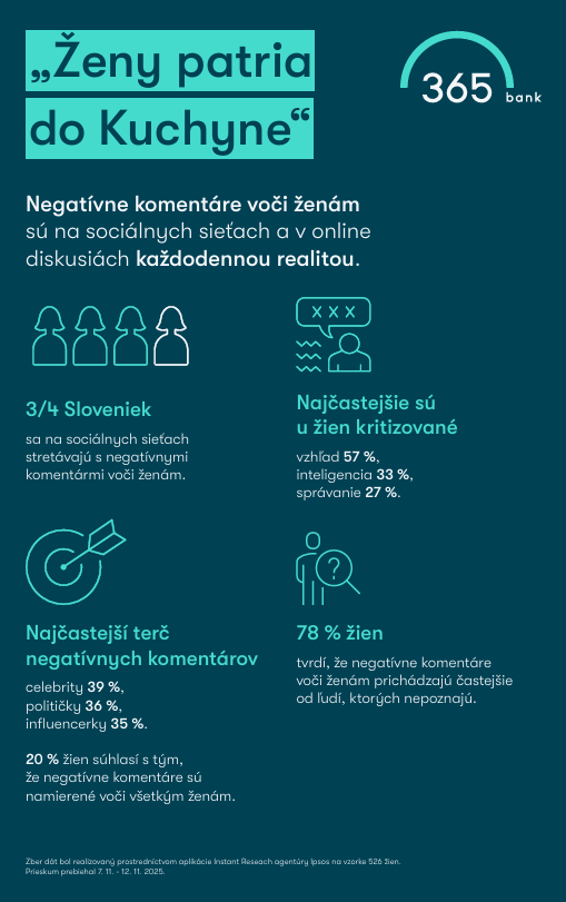 Prieskum 365.bank odhalil, že negatívne komentáre voči ženám sú v online svete častým javom. Až 60 % respondentiek, ktoré používajú sociálne siete, uviedlo, že sa s nimi stretáva minimálne niekoľkokrát do mesiaca, 40% na týždennej báze, 19 % dokonca každý deň. Výsledky prieskumu tak naznačujú, že tieto prejavy nie sú ojedinelé, ale pre mnohé ženy sa stávajú súčasťou každodennej online reality.