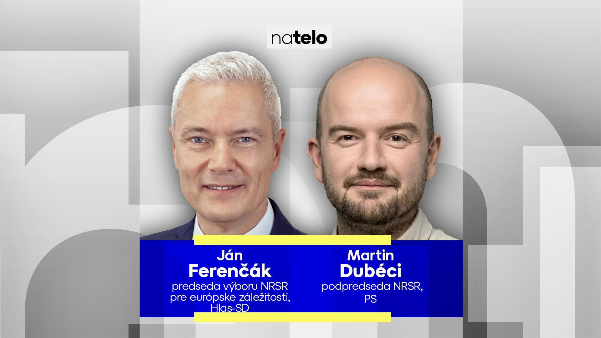 Hostia diskusie: Predseda Výboru NR SR pre európske záležitosti zo strany Hlas-SD Ján Ferenčák a podpredseda NR SR a podpredseda Progresívneho Slovenska Martin Dubéci.