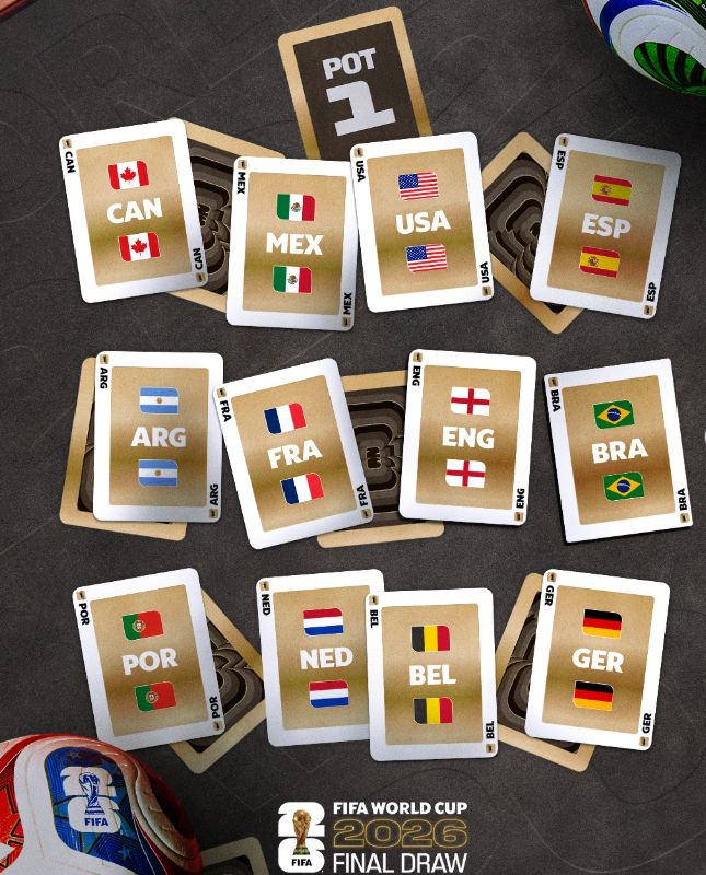 Kôš 1: Kanada, Mexiko, USA, Španielsko, Argentína, Francúzsko, Anglicko, Brazília, Portugalsko, Holandsko, Belgicko, Nemecko