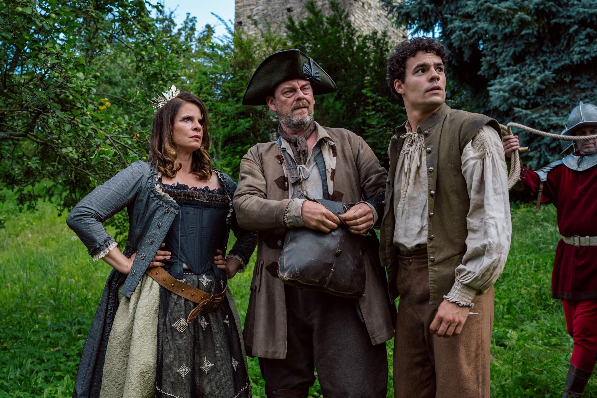 Dodáva, že Stella rozhodne nie je princezná, ktorá sa správa podľa predstáv svojho okolia: „Nie je úplne spokojná s tým, čo od nej rodičia očakávajú. Nerozumejú jej povahe ani túžbe po vzdelaní. Nie je to klasická princezná a občas aj trochu hnevá.“ Diváci tak uvidia dievča, ktoré si namiesto vyšívania užíva šermovanie: „Veľmi som sa tešila na šerm aj na scény s jazdením na koňoch.“ Výraznú úlohu zohráva pašerák Johan, ktorého hrá Filip Březina. „Hrám takého chudobného obchodníka zo Slámova, ktorý sa tvári, že predáva knihy, ale v skutočnosti pašuje jablká a hrušky, aby sa uživil. A tak trochu náhodou sa zamiluje do princeznej,“ opisuje herec s úsmevom. Podľa Březinu film prináša príbeh, ktorý presahuje rozprávkový rámec: „Myslím si, že táto rozprávka osloví veľa ľudí, pretože sa sústreďuje na tému sebalásky a sebahodnoty. Bez toho, aby sme mali radi sami seba, nedokážeme mať radi nikoho iného.“ Na opačnom póle stojí princ Ukrut z Hruškového cisárstva v podaní Tomáša Webera, známeho ako Jiřík z tohtoročnej Zlatovlásky. Jeho postava je omnoho zložitejšia, než sa na prvý pohľad zdá: „Keď mal dvanásť, želal si byť niekým iným. Odvtedy sa každé ráno prebúdza v inom tele. Rovnako ako princezná Stella, s ktorou má spoločný dátum narodenia aj dohodnuté manželstvo. Chce túto kliatbu prelomiť, a preto sa spojí s tajomnými fúriami, ktoré mu sľúbia odčarovanie, ak im privedie niekoho, koho najviac nenávidí.“ Na nakrúcanie spomína s nadšením: „Užíval som si šermiarske tréningy, rozprávkové prostredie na hradoch a stretnutie s množstvom hereckých legiend, ako sú Regina Rázlová, Martin Myšička či Petr Nárožný.“ Koleník ako nemilosrdný zloduchJeho pomocníka Ramora stvárňuje herec Ján Koleník. Aj on si natáčanie užil do sýtosti: „Stvárňujem tu zloducha, ktorý chce získať moc. Prípravy na natáčanie ma bavia, mám veľa energie nacvičovať nové veci a zdokonaľovať sa v tom. Sú to také chlapčenské hry, ktoré my herci máme veľmi radi.“