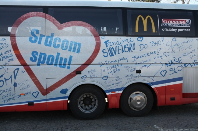 Ústredným motívom autobusu je srdce na ľadovej ploche s nápisom Srdcom spolu, ktorý symbolizuje podporu fanúšikov slovenským hokejistom. „O tom, ako slová podpory dokážu pri zápasoch zavážiť, sa presvedčíme aj v týchto dňoch pri hokejovom dvojzápase v českej Jihlave, v ktorom sa stretávajú slovenskí hokejisti s českou reprezentáciou. Oba tímy na miesto zápasov privezú autobusy dekorované kampaňou Srdcom spolu. Veríme, že podpora fanúšikov a povzbudzujúce odkazy dodajú silu a motiváciu hokejistom na oboch stranách,“ hovorí Zuzana Svobodová.